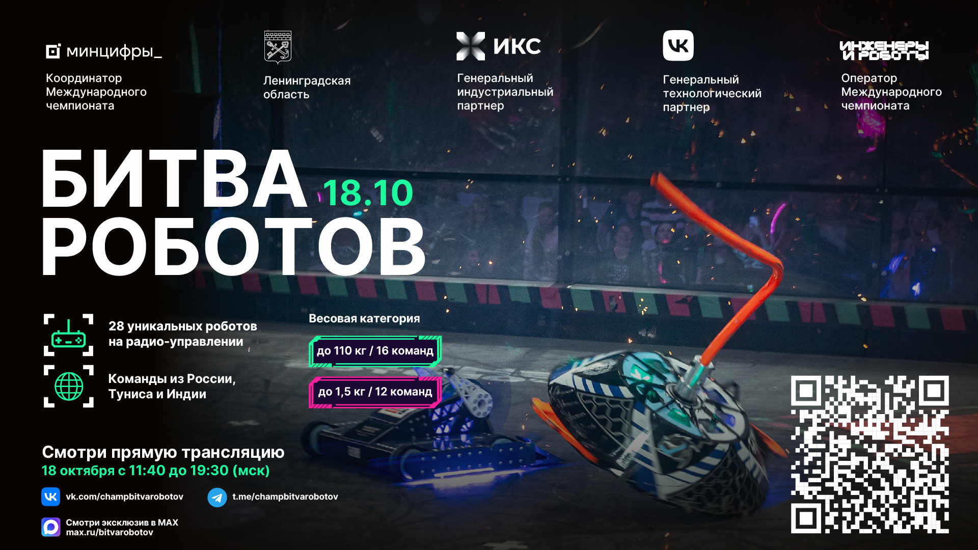 Минцифры России в соответствии с распоряжением Правительства Российской Федерации от 11 апреля 2023 г. № 889-р сообщает о проведении третьего отборочного этапа Международного чемпионата по битве роботов сезона 2025 года.
